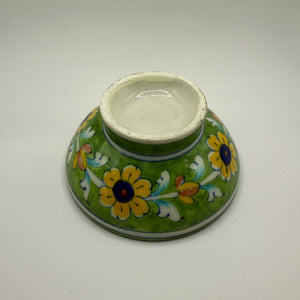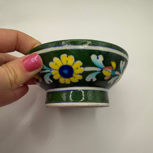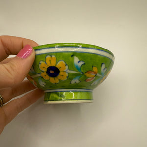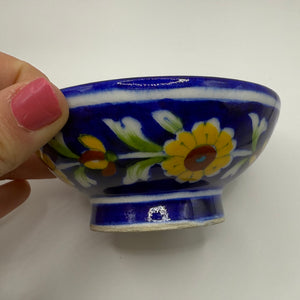 Add a touch of vibrant Indian artistry to your home with these exquisite Jaipur Pottery accent bowls. Handmade and hand-painted in Jaipur, India, the heart of this unique art form, each small bowl showcases the distinctive blue hues and intricate floral patterns characteristic of this celebrated craft. Perfect for holding trinkets, jewelry at your bedside, or simply adding an elegant touch to any space, these delicate bowls are not food-safe and should be hand-washed only.